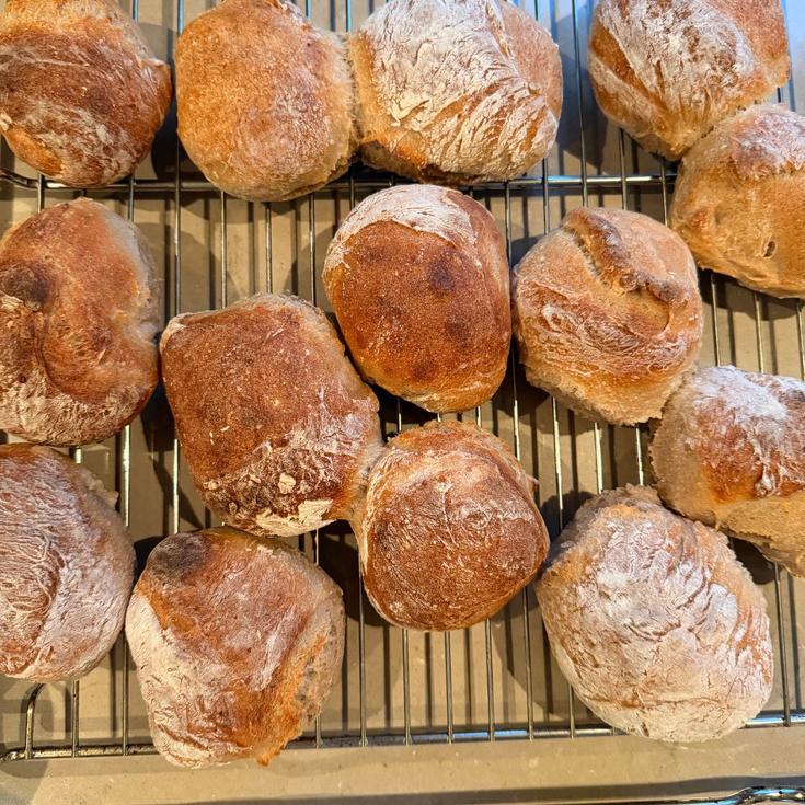 Koldhævede morgenboller med sprød skorpe & rustikke store lufthuller      Ingredienser (ca. 10 boller) 5 dl lunkent vand 10 g gær …Læs mere
